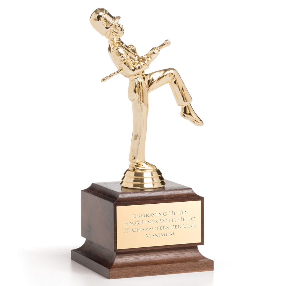 When it's cause for celebration, present that special achiever with this solid wood trophy showcasing your choice of detailed, dynamic figure.