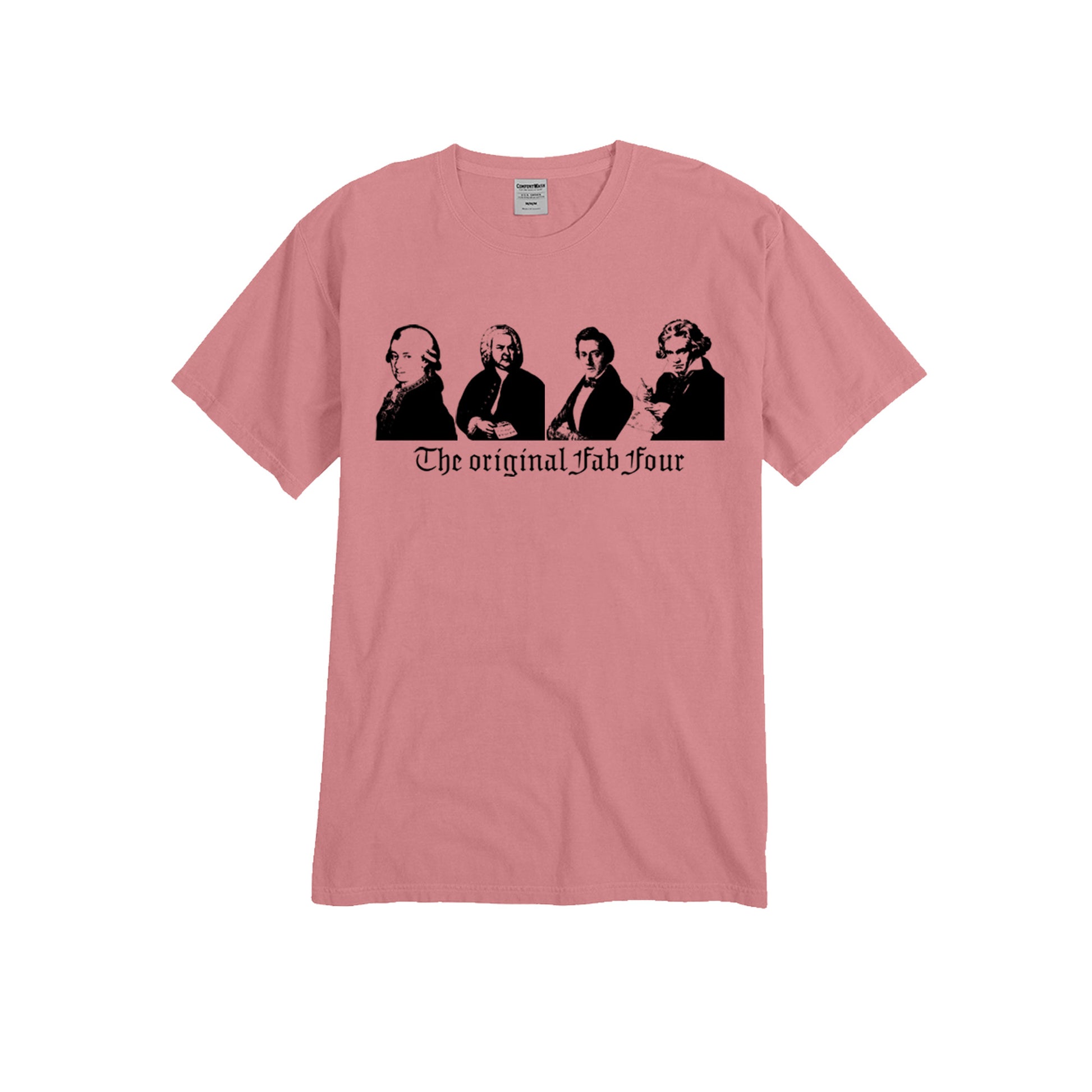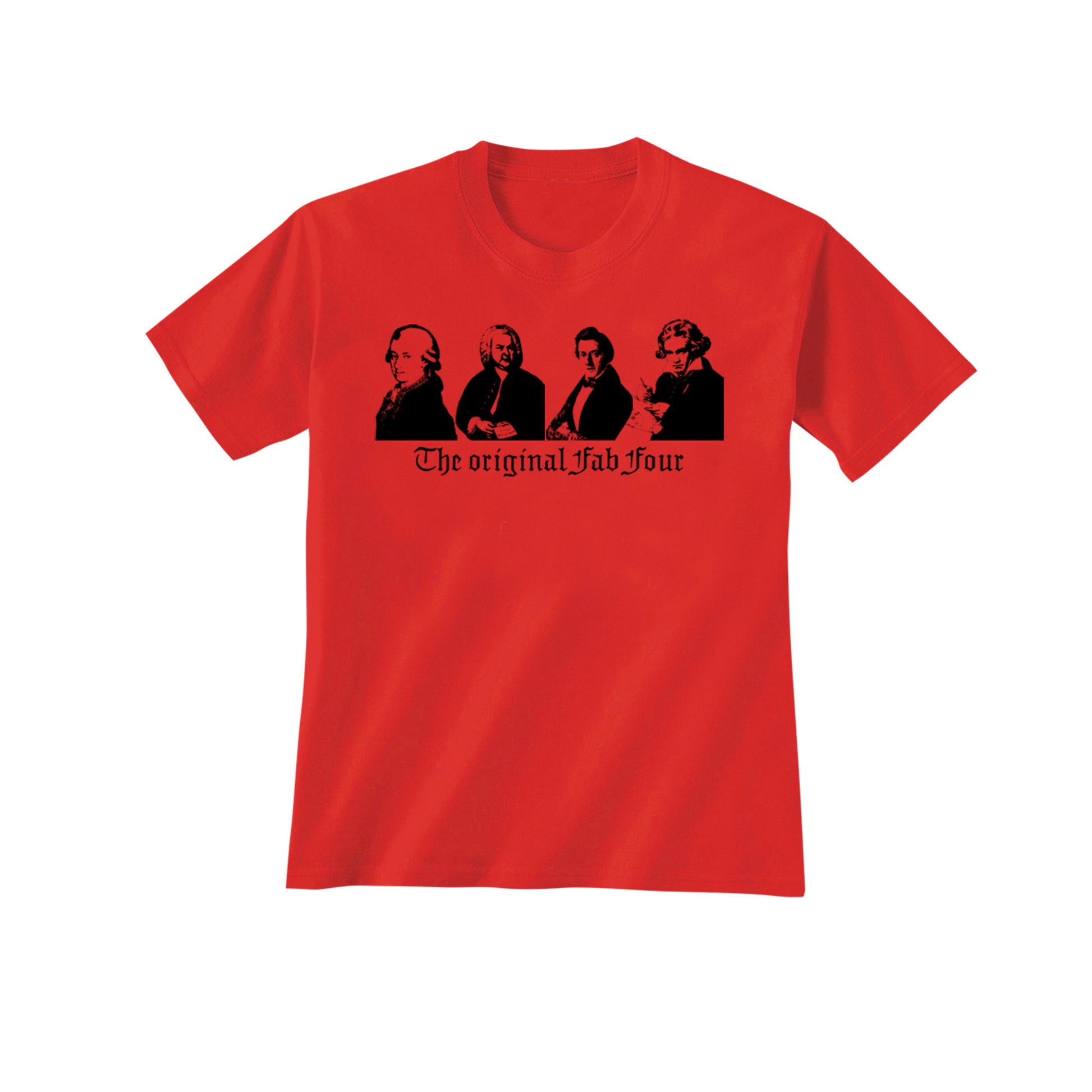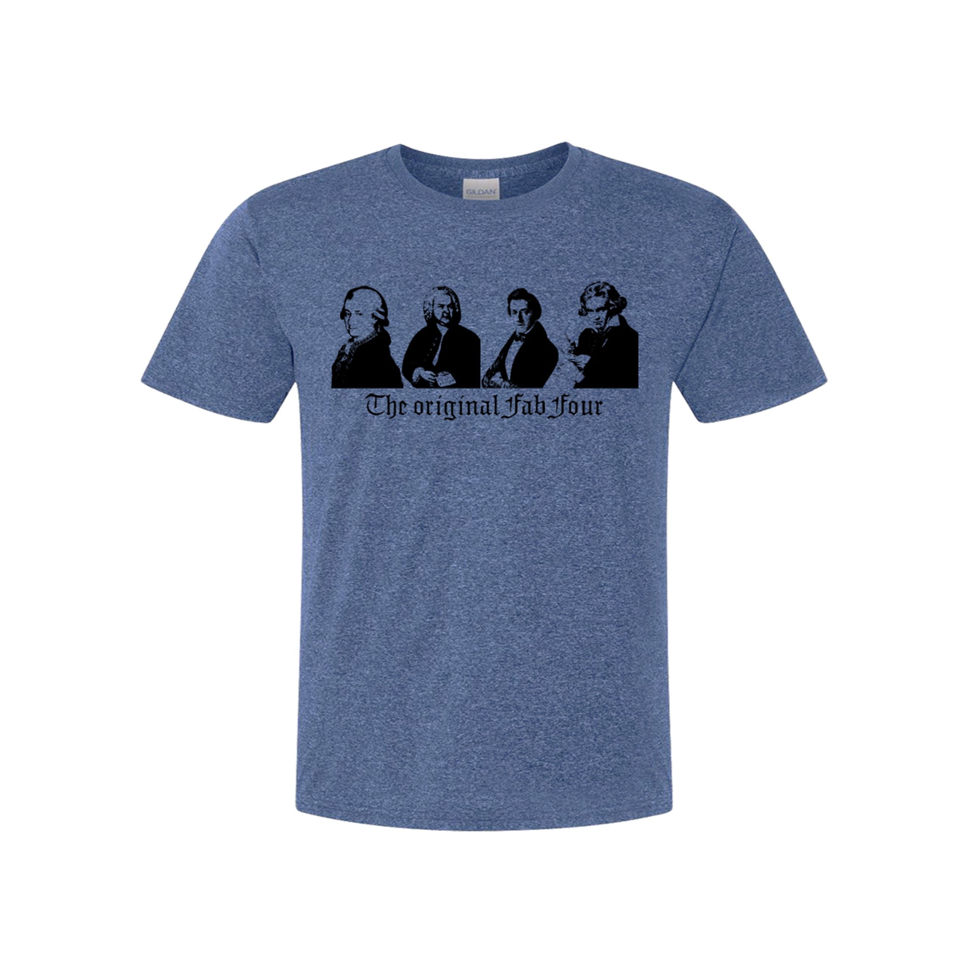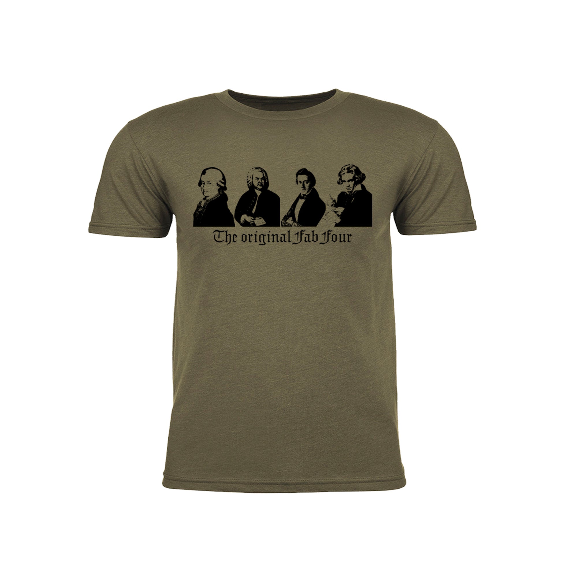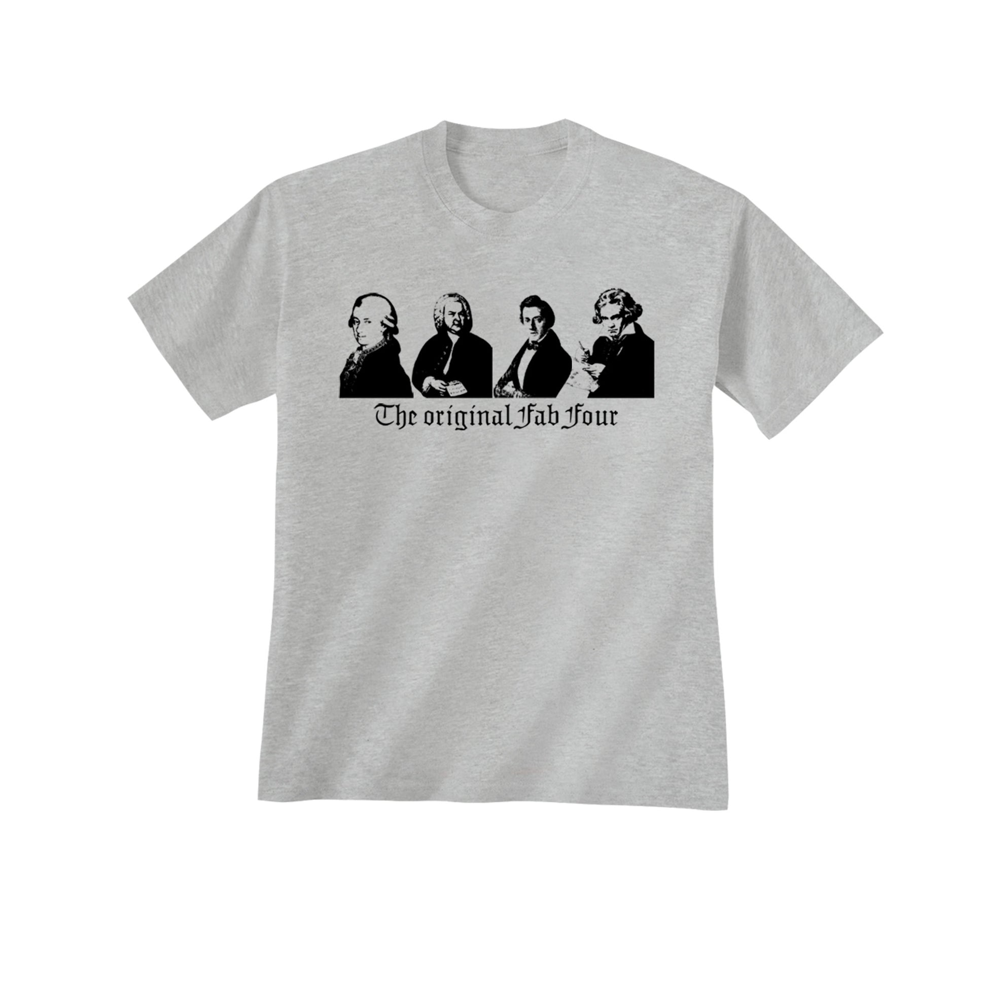 Calling all music lovers and history buffs! Introducing the Original Fab 4 T-Shirt, featuring the ultimate musical dream team: Mozart, Bach, Beethoven, and Chopin. This shirt is your ticket to geeking out in style while paying homage to the greatest composers of all time. Whether you're a pianist or just a fan of classical music, this tee is sure to strike a chord with your inner maestro. So put on some headphones, grab your sheet music, and rock this shirt with pride!