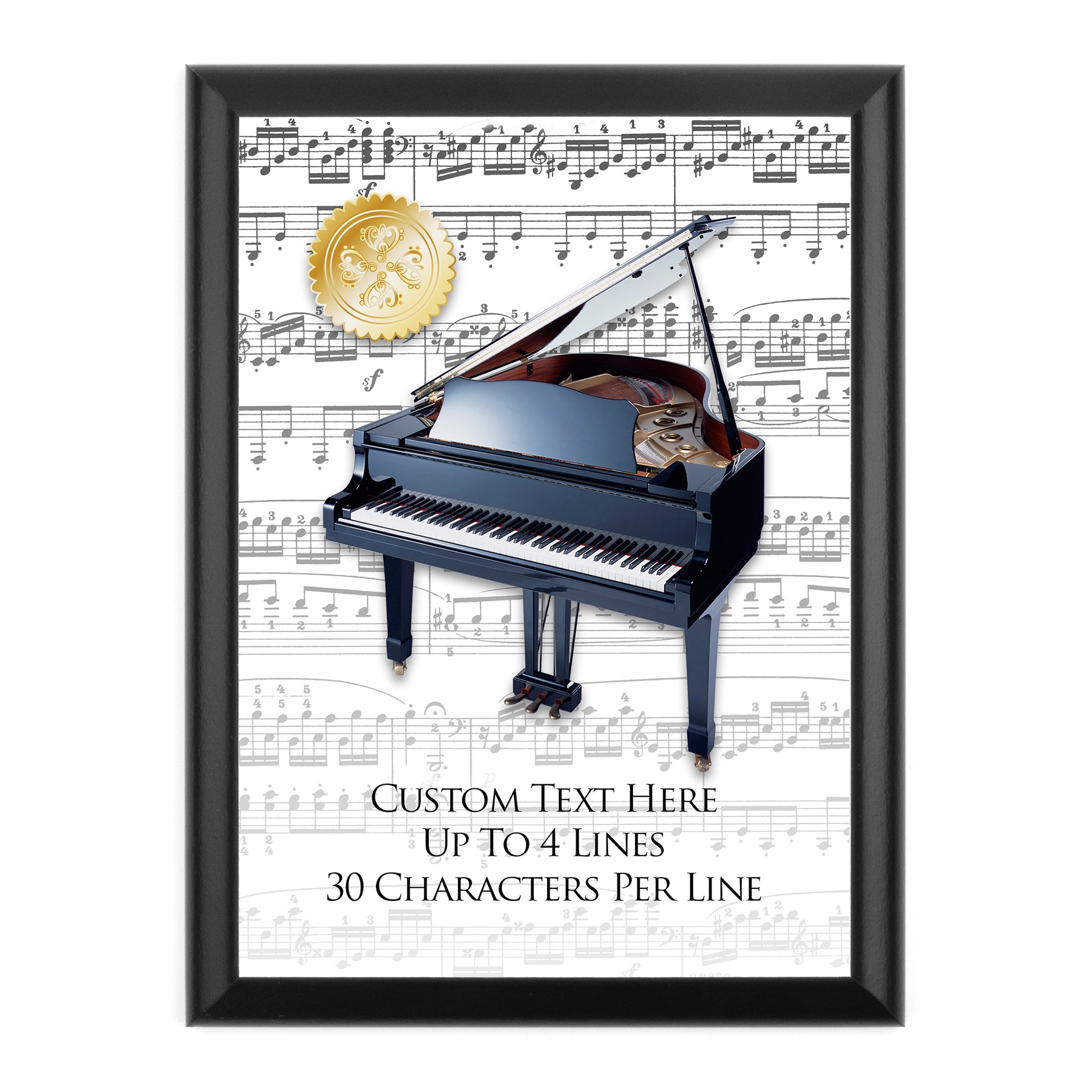 We've brought the classic award plaque back up to date, with a full color print, mounted on a wood base with a black finish. The design features sheet music as a background to the instrument of your choosing, to create an exceptional-looking award that anyone would be pleased to receive.